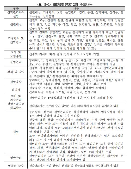 2000년대 후반부터 국내 선박관리회사도 선박관리 기술과 노하우가 발전하면서, 기존의 선원관리 영역에서 벗어나 선박예방정비(PMS), 안전품질관리보험 및 클레임관리, 구매보급 관리, 입거수리, 운항관리, 사고관리, 선원관리 시스템 등으로 주요 업무영역이 확대되었다.