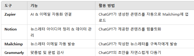 🔹 ChatGPT를 활용하면 뉴스레터 콘텐츠를 빠르고 효과적으로 생성할 수 있습니다.