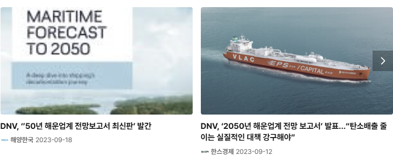DNV는 '2050년 해운업계 전망(Maritime Forecast to 2050)' 보고서를 통해 해운업계의 탈탄소화, 연료 전환, 기술 개발 등에 대한 전망을 제시한다.
