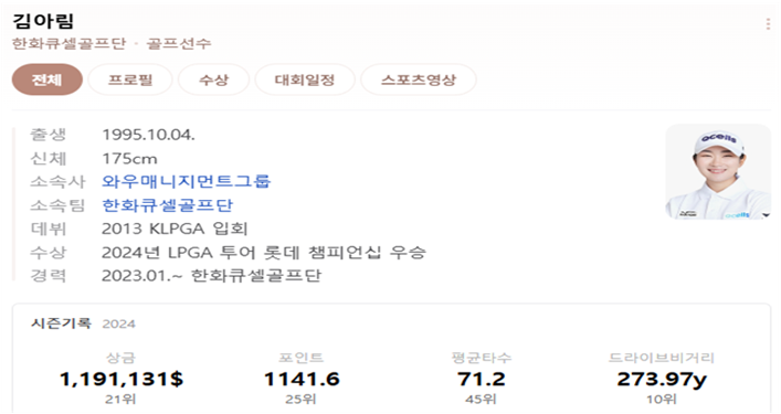 김아림 선수 소개 및 전적