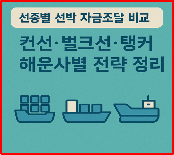 전략은 다릅니다. 컨테이너선, 벌크선, 탱커선 각 선종별 자금 구조, 금융 트렌드, 리스크 포인트를 종합 비교해드립니다.목차왜 선종별 자금조달 전략이 다른가?컨테이너선(Container Ship)의 자금조달 구조벌크선(Bulk Carrier)의 자금조달 구조탱커선(Tanker)의 자금조달 구조선종별 조달 방식 비교표자금조달 선택 시 고려할 핵심 요소전략적 조합이 생존을 좌우한다1. 왜 선종별 자금조달 전략이 다른가?선박은 단순 자산이 아니라 영업 구조와 시장 시황에 따라 가치가 변하는 금융 자산입니다.따라서 선종에 따라 운항 수익구조, 시장 변동성, 선가 회수기간, 자산가치 변동폭이 모두 달라지므로, 자금조달 방식 역시 맞춤형 전략이 필요합니다.2. 컨테이너선(Container Ship)의 자금조달 구조..